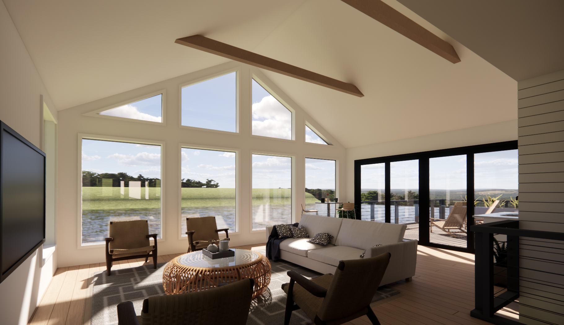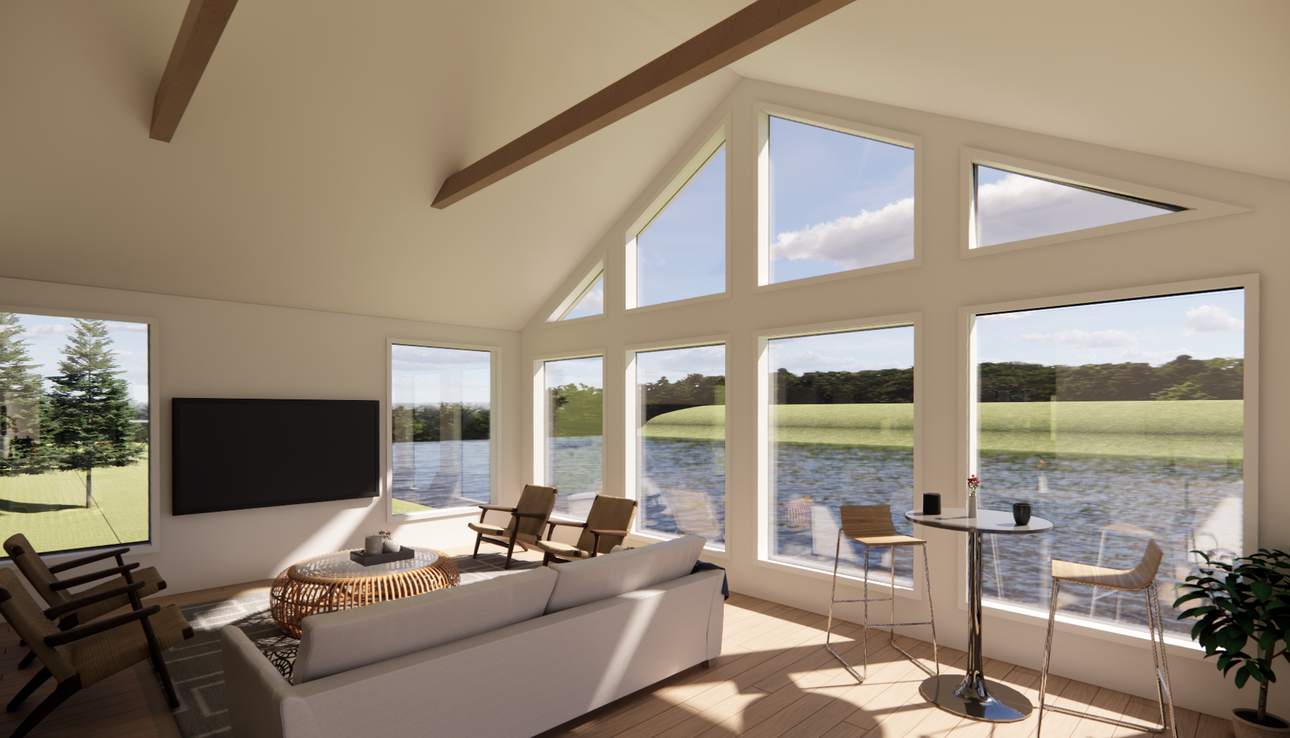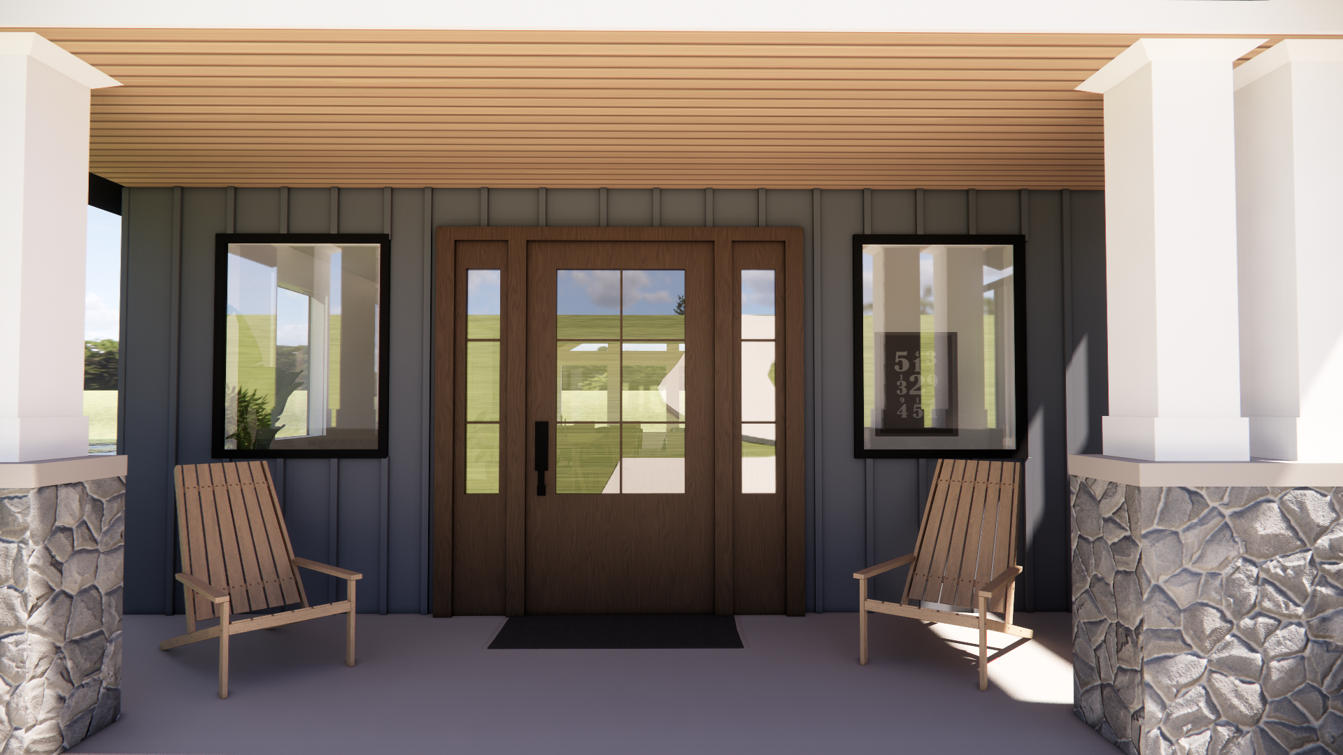 A series of renderings for a lake house outside Columbus, IN. These were created with the builder as a design tool to help the client visualize some of the major design decisions.